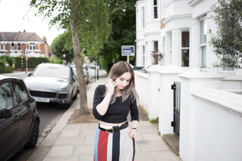 The skirt reminds me of a circus tent, in the best way possible. It’s so summery and also gives a bit of a deck chair vibe but isn’t too bright of in your face, especially when paired with black which is great news for me and my summer hating wardrobe.