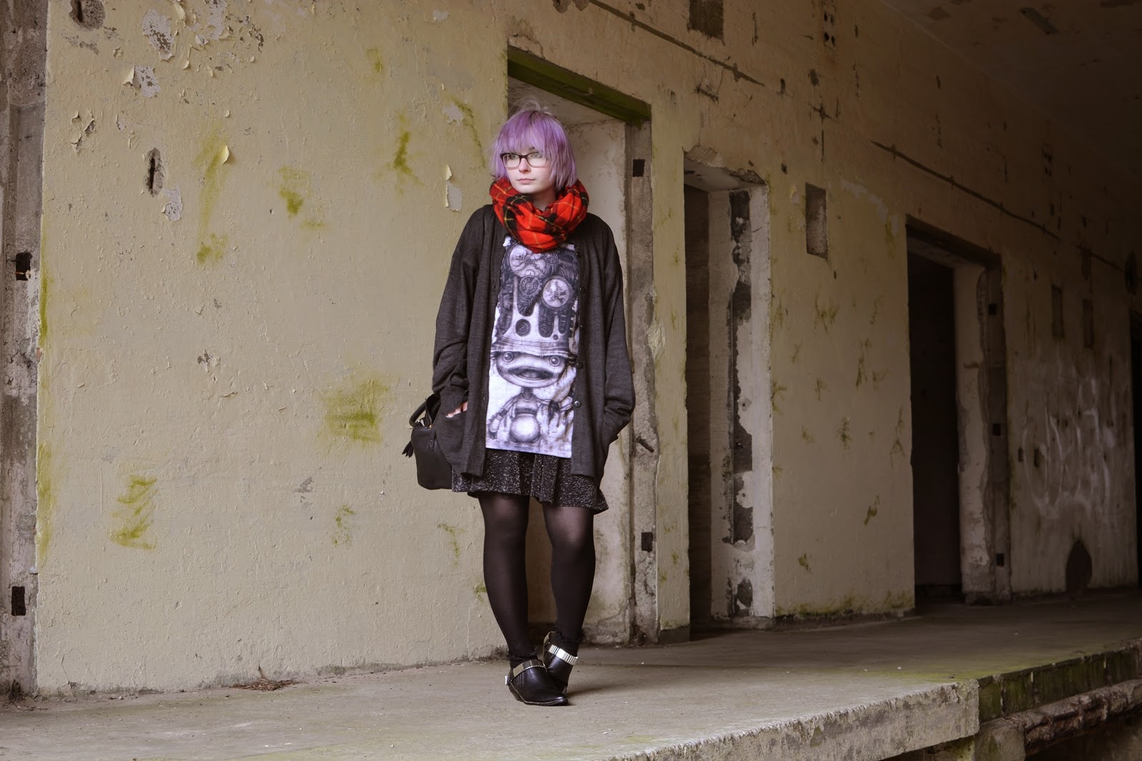 Bag – Primark  |  Cardigan – Milan market  |  Scarf – Tesco  |  Top – Black Milk  |  Dress – New Look  |  Socks – Primark  |  Shoes – Jeffrey Campbell